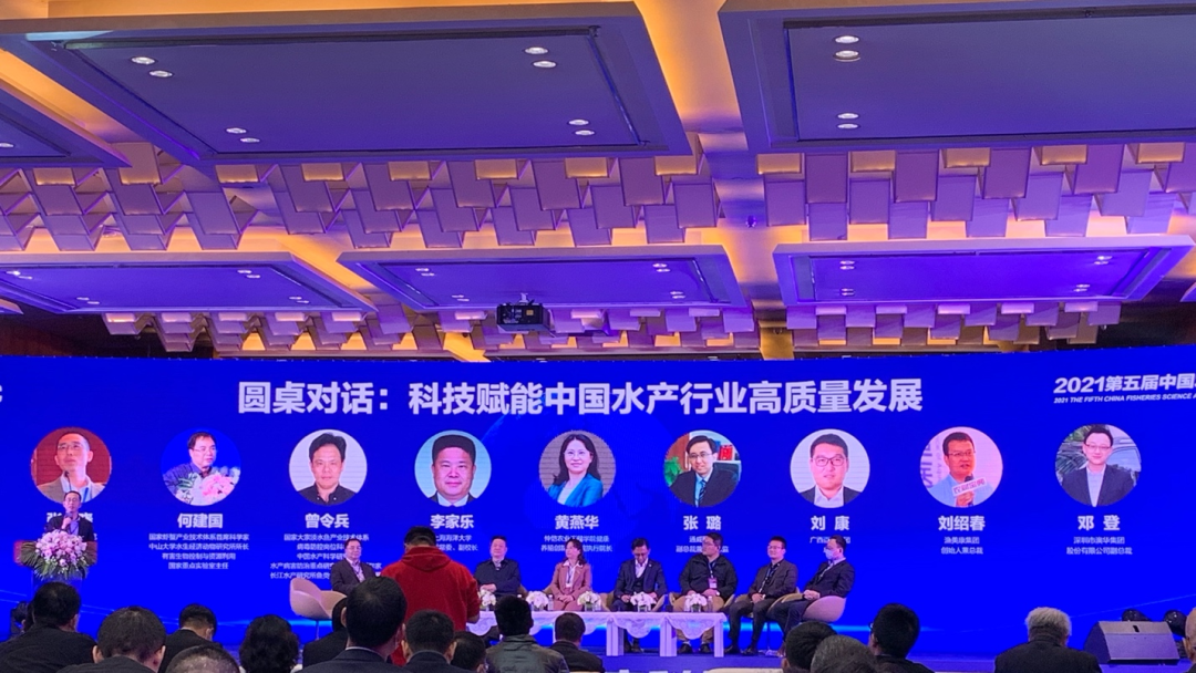 市场的持续需求与稳定的产出,是虾产业未来的发展方向。南美白对虾是最适于工厂化大规模养殖的品种。广义的工厂化养殖是有设施(车间)和装备,有“全程控制”的工业化理念,有程序化的流程,尾水经生态处理或循环利用,能实现时间与空间的高效利用,提升管理效率,降低人力资源,确保各项环境因子可控,有效减少应激和病害,同时让污染排放、安全性、养殖进程皆可控,既符合环保要求,又保证产品的市场接受度,稳定化产出,最终实现数字化、程序化、智能化的工业化运作目标。 基于地域和资源特色的中国式工厂化养虾,仍处于发展中阶段,陆续发展出了流水/半流水式养殖、生物絮团养虾、小棚养虾、循环水养殖等模式。其中小棚养虾获得了较明显的成功,但有水源能否保证、技术是否可靠、成功率是否稳定、尾水是否处理等发展隐患。循环水养殖属于工厂化养殖的高级阶段,优点在于全封闭、零排放,设施化、自动化可控性很高、产品安全。问题在于水产品价格能否满足设备设施投资及运行成本,系统的稳定性和实用化有待提升,连续成功的规模化养虾案例较少。今后有通过自净小循环+深度处理,内外双循环,降低能耗相关技术等进行提升的可能性。 主题演讲环节进入尾声,在集美大学水产学院院长张春晓的主持下,中山大学水生经济动物研究所所长、国家虾蟹产业技术体系首席科学家何建国,国家大宗淡水鱼产业技术体系病毒防控岗位科学家、中国水产科学研究院水产病害防治重点研究领域首席科学家曾令兵,上海海洋大学党委常委、副校长李家乐,仲恺农业工程学院健康养殖创新研究院执行院长黄燕华,通威股份副总裁兼技术总监张璐,广西百洋集团总裁刘康,渔美康集团创始人兼总裁刘绍春以及深圳市澳华集团股份有限公司副总裁邓登一同参与圆桌对话,探讨科技赋能中国水产行业高质量发展。