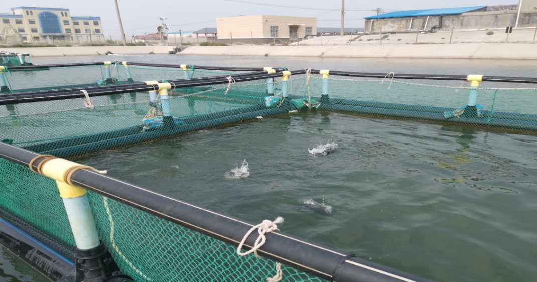 花鲈亲鱼室外网箱培育区