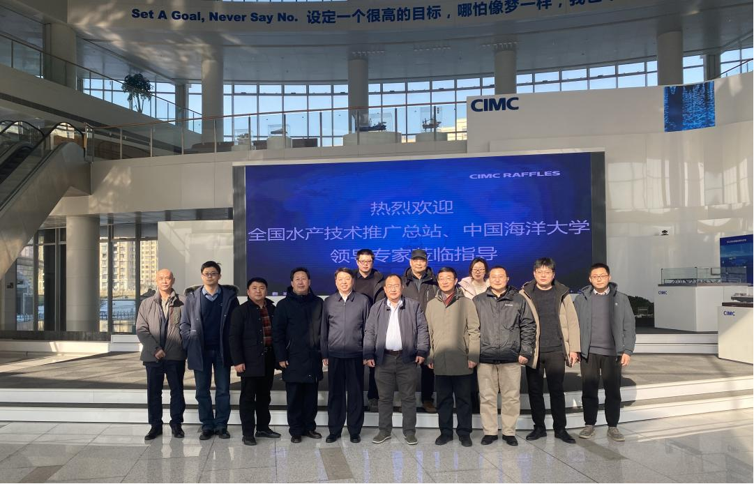 考察团合影 考察团还参观了中集海工院沙盘和经海九仙云大数据智慧系统和智慧渔业管理系统。