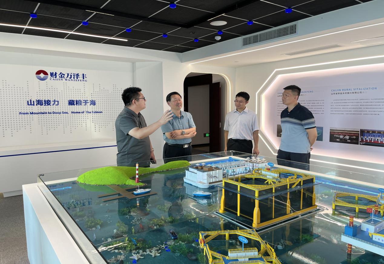 2023年6月8日,温海深教授一行3人,赴山东万泽丰海洋开发集团有限公司(万泽丰海洋公司)总部及基地考察,公司总裁与总经理向温海深一行介绍了集团发展历史与目前海洋牧场、三文鱼养殖产业链发展概况。集团养殖板块负责人孟令寀等带领温海深一行考察了3个陆基三文鱼养殖基地,双方就虹鳟三倍体制种、苗种培育、陆海接力养殖等方面进行充分交流,初步达成了合作意向。