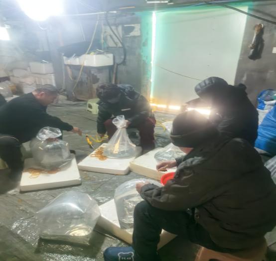 鱼类繁殖生理与种子工程实验室负责人温海深教授深入内蒙古巴彦淖尔市河套地区调研,与内蒙古农业大学、巴彦淖尔市科技局、杭锦后旗农业农村局等单位进行充分交流与现场勘测,决定从山东省东营市利津县双瀛水产苗种公司(山东省花鲈良种场),分两年度引进团队培育的速生耐碱花鲈新品系苗种20-30万尾,探索冬季室内温棚大规格苗种培养关键技术,无缝对接春季室外土池塘成鱼精养,形成高寒盐碱水域当年养成1.0-1.5斤花鲈商品鱼养殖模式。 2026年1月18日,首批11.8万尾花鲈鱼苗安全到达养殖场,平均全长为3厘米左右(2.5-3.5厘米),运输成活率达95%以上。此次采用活鱼车陆路运输方式,从山东省东营市利津县刁口乡起运,历经1300余公里,耗时近20小时,到达杭锦后旗头道桥镇华凯水产养殖场。该养殖场冬季室内养殖水槽温度为17-19℃(室外气温零下20℃左右),水体碱度为4-5mmol/L。经过3天驯化,花鲈鱼苗已经集群摄食,活动状况正常,说明已经适应新的碱水环境。